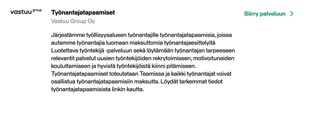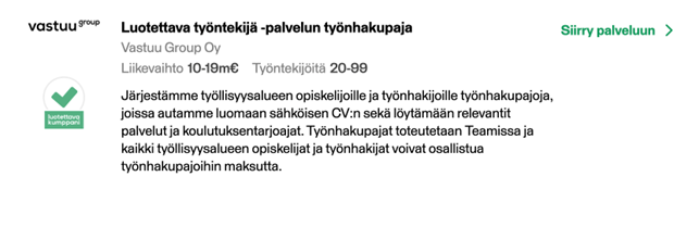 Lisäämällä omat palvelut palveluverkostoon, olette mukana rakentamassa vaikuttavia ja ihmiskeskeisiä työllisyyspalveluita. Esittelyiden luominen on maksutonta.