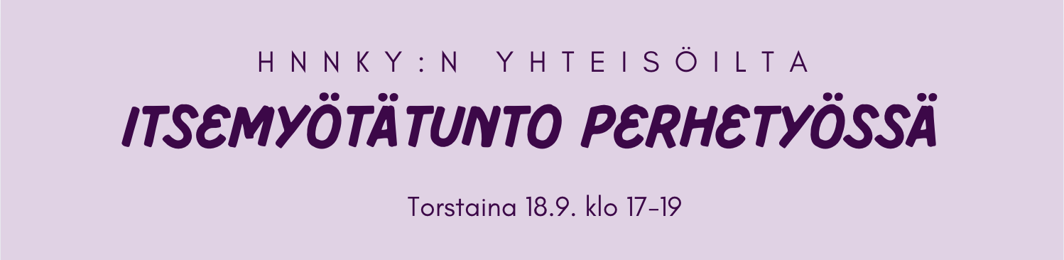 Illan teema on perhetyö ja tarkemmin itsemyötätunnon taidot perhetyössä. Perhetyön suunnitelman ja vapaaehtoismahdollisuuksien lisäksi illan aikana kuulemme positiivisen psykologian ja johtamisen asiantuntijoiden puheenvuoroja ja tutustumme toisiimme. Tarjolla on myös pientä purtavaa.